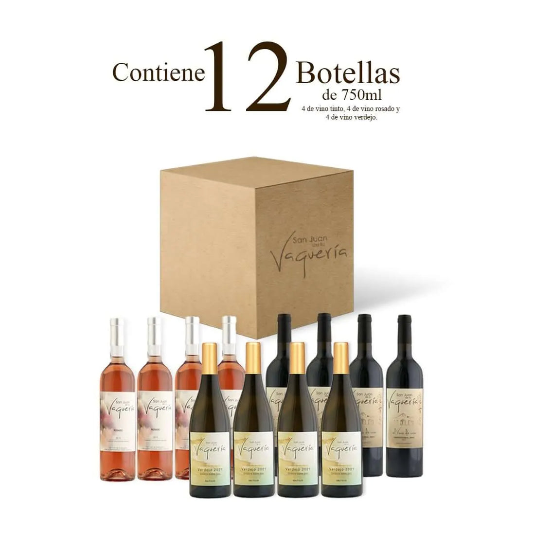 Caja con 12 Vinos Mixtos, 4 Botellas Vinos Rosados, 4 Botellas Vinos Verdejo, 4 Botellas...