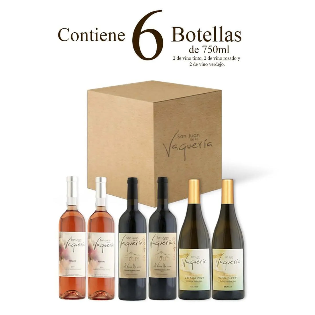 Caja con 6 Vinos Mixtos, 2 Botellas Vinos Rosados, 2 Botellas Vinos Verdejo, 2 Botellas...